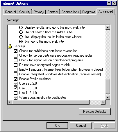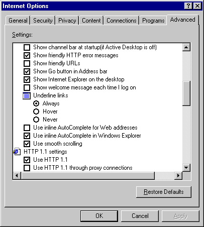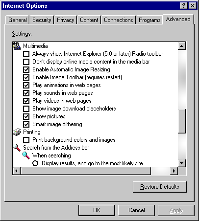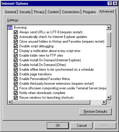 Advanced Internet Options (Tools Menu)